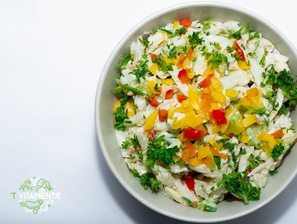 witte selder, appel, paprika, venkel, bieslook, dressing