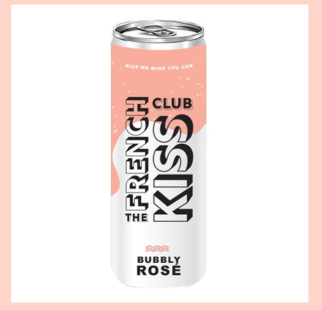 Onze kenmerkende The French Kiss Club bubbly rosé wordt geleverd in een handig blikje van 250 ml, bevat 7,5% alc., en is gemakkelijk te drinken en gemakkelijk te combineren met de zonsondergang en goede beats.