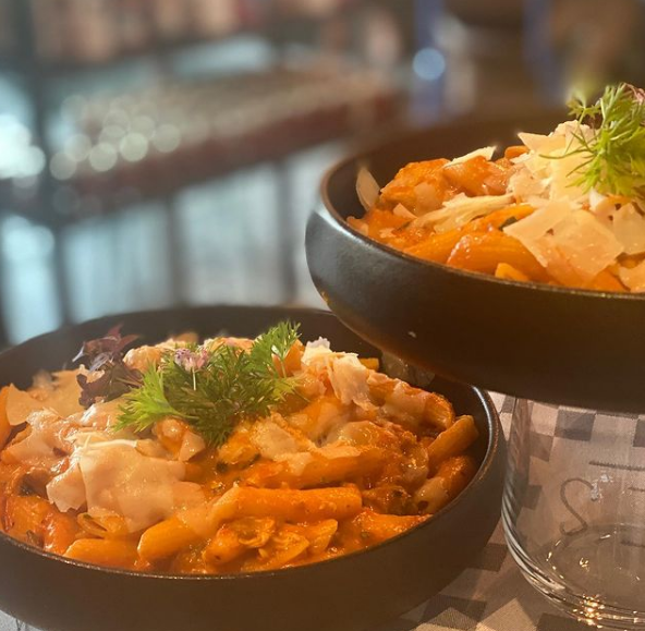 champignons, spek, licht romige tomatensaus Let op: enkel leverbaar op donderdag, vrijdag of zaterdag