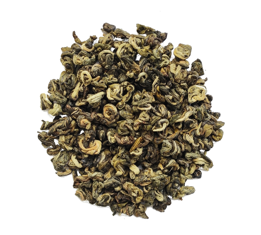 Jade Snail is een Chinese groene thee die bestaat uit strak gerolde, pluizige topjes lijkend op spiraalvormige schelpjes. Tijdens het weken ontvouwen ze zich om heerlijke tonen van geroosterde noten, met een zachte rokerigheid, vrij te geven. Wanneer deze tonen vervagen, blijft een droog wit druivenkarakter hangen. Onze Jade Snail groene thee is intrigerend delicaat en gedurfd.