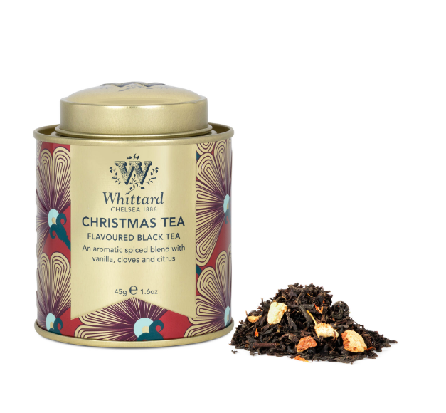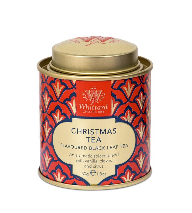 Een aromatische, gekruide losse zwarte thee met vanille, kruidnagel en citrus. Het wordt tentoongesteld in een opvallende mini-caddy van het seizoen en is een vrij mooie kerstkousvuller.