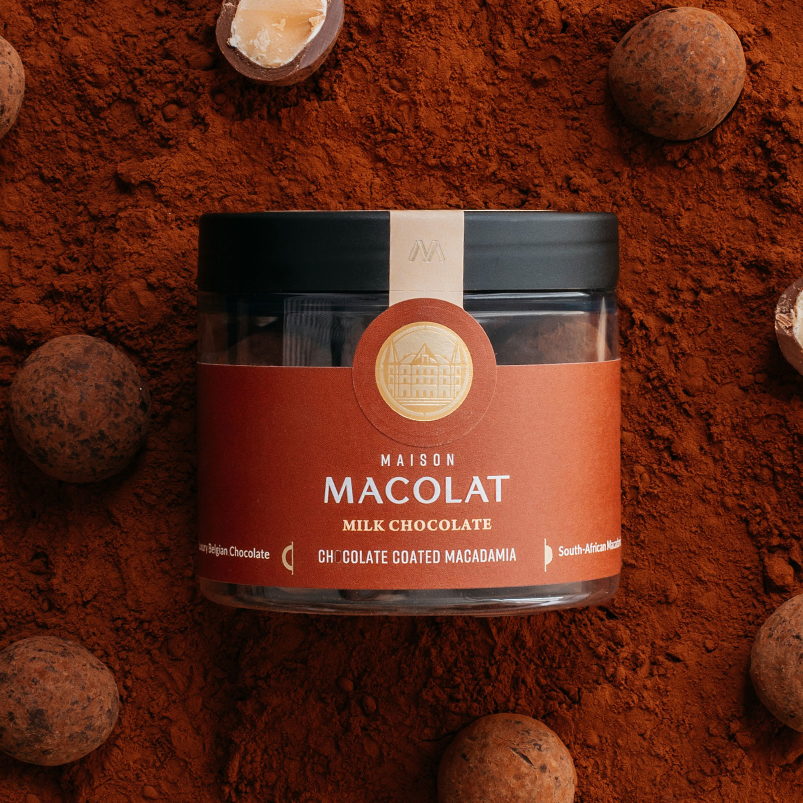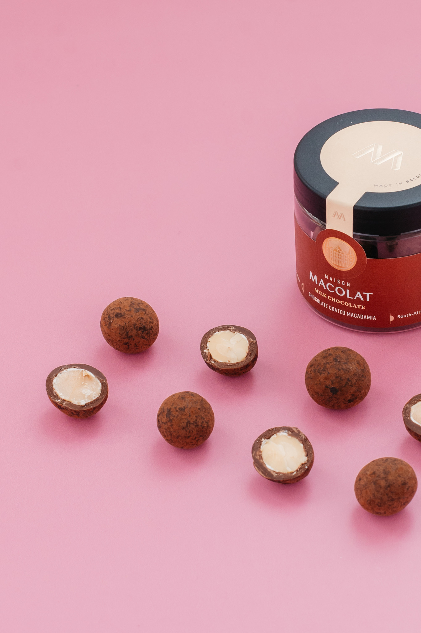 Belgische traditie ontmoet Zuid-Afrikaans erfgoed. Een traditionele Belgische melange van melkchocolade, elegant samen met de romige Zuid-Afrikaanse Macadamia.