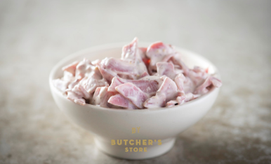 Een heerlijke salade op basis van kruidige pastrami en een mayonaisedressing.