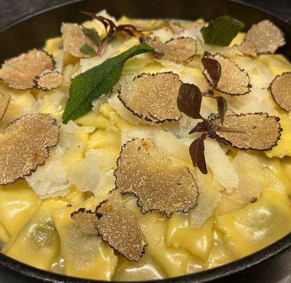 raviolietjes van ricottakaas, spinazie, boter, salie en truffel Let op: enkel leverbaar op donderdag, vrijdag of zaterdag