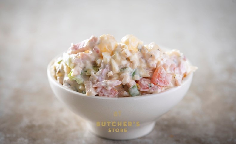 Een salade met een knipoog naar de Provence. Vleesstukjes, fijne groentjes en Provençaalse kruiden. Heerlijk.