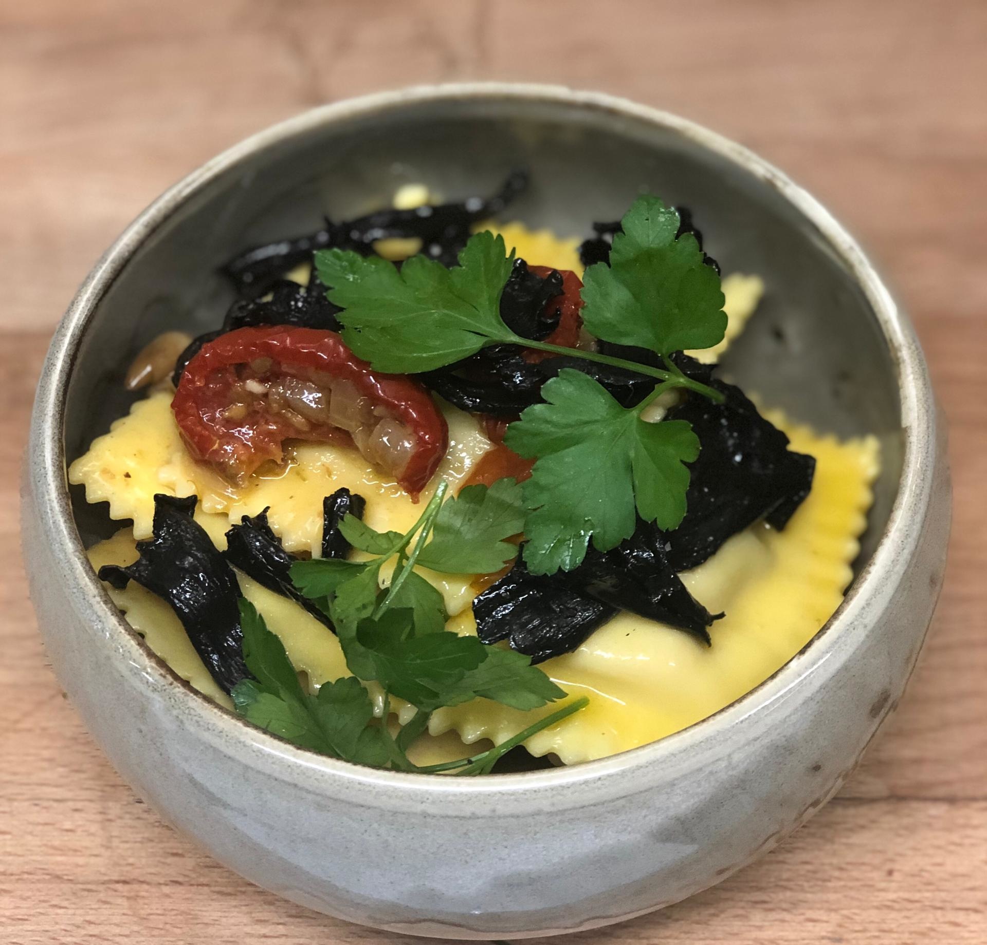 Secreto 07 Ravioli met boschampignons: Met salieboter en Parmezaan. Alle voorgerechten worden afgeleverd in porseleinen schotels waarvoor een waarborg wordt aangerekend. Meer informatie vindt u bij 'Informatie'.