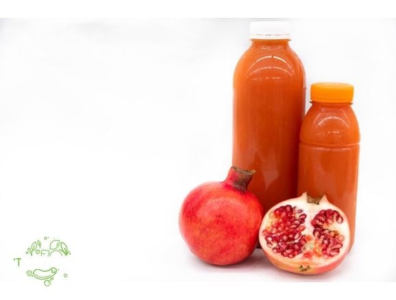 Dagelijks vers geperst sap met appelsien en granaatappel.