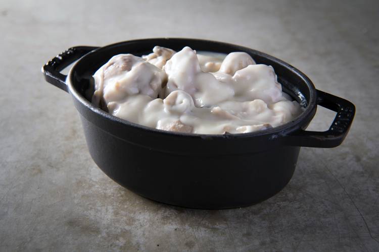 Verhouding kip balletjes kan beter, smaak is wel oké.
